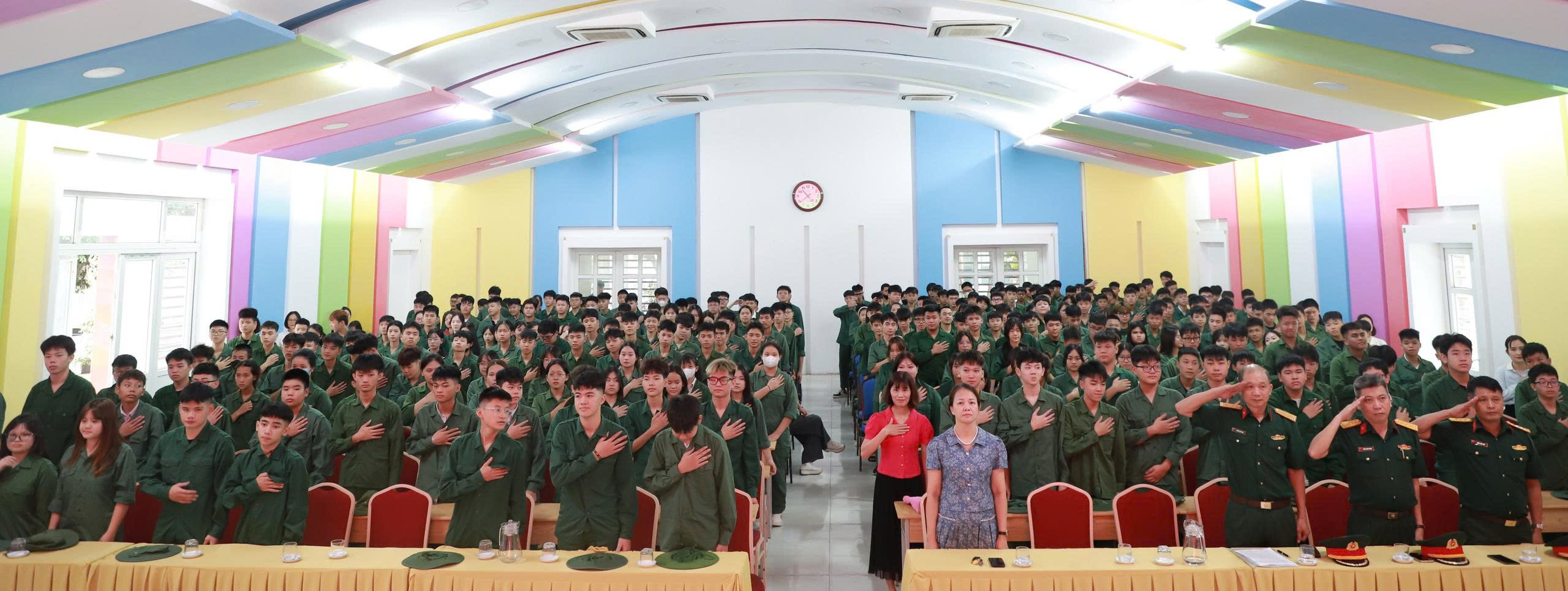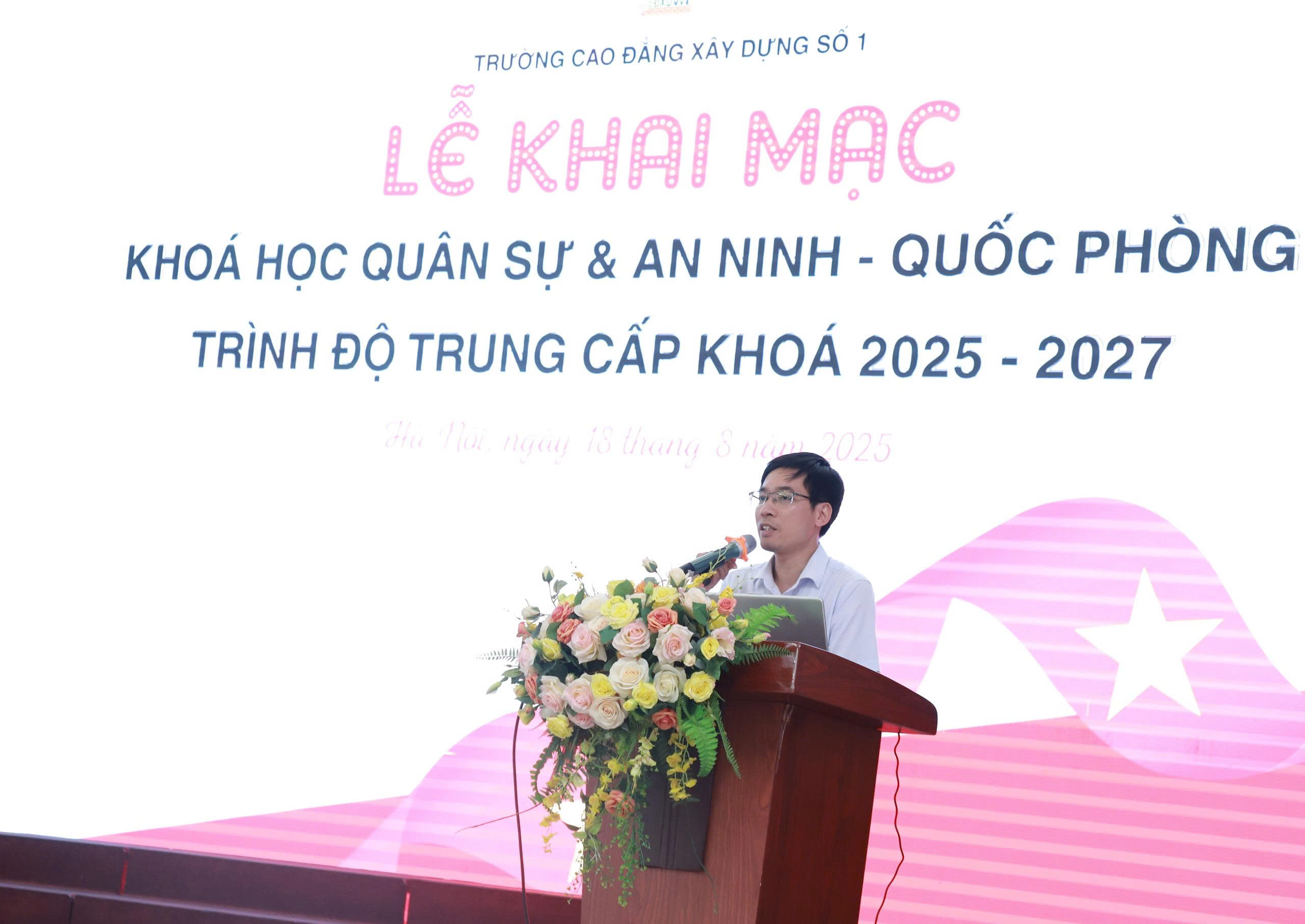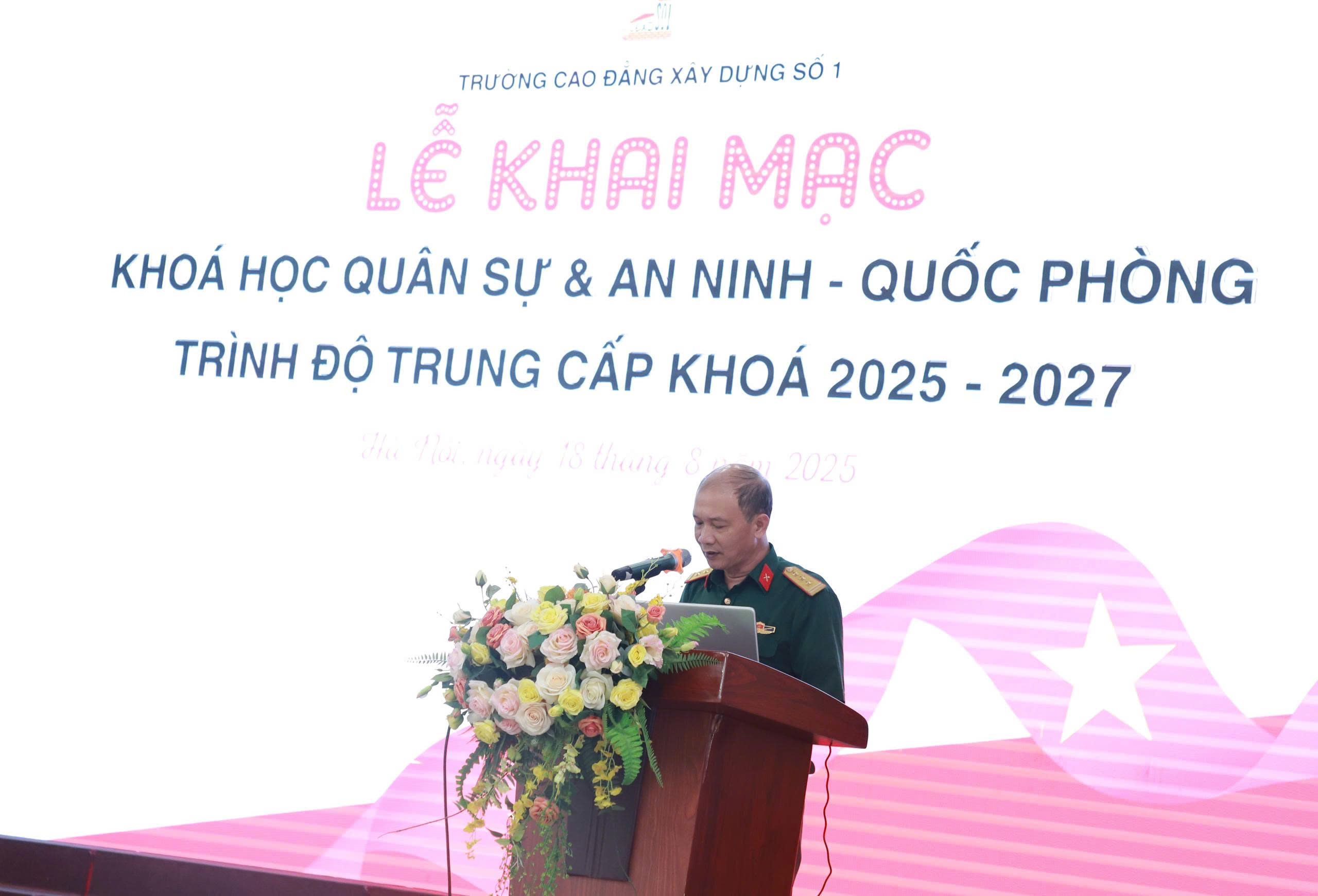 Sáng ngày 18/8/2025 tại Hội trường lớn Nhà trường đã diễn ra Lễ khai mạc khóa học “Quân sự và An ninh – Quốc phòng” cho khối 10 Hệ Song bằng tuyển sinh 2025. Khóa học cũng là cơ hội để học sinh có thời gian làm quen với trường lớp, thầy cô và bạn bè, chuẩn bị những tâm thế tốt nhất để các em bước vào một giai đoạn học tập mới tại Trường Cao đẳng Xây dựng số 1.