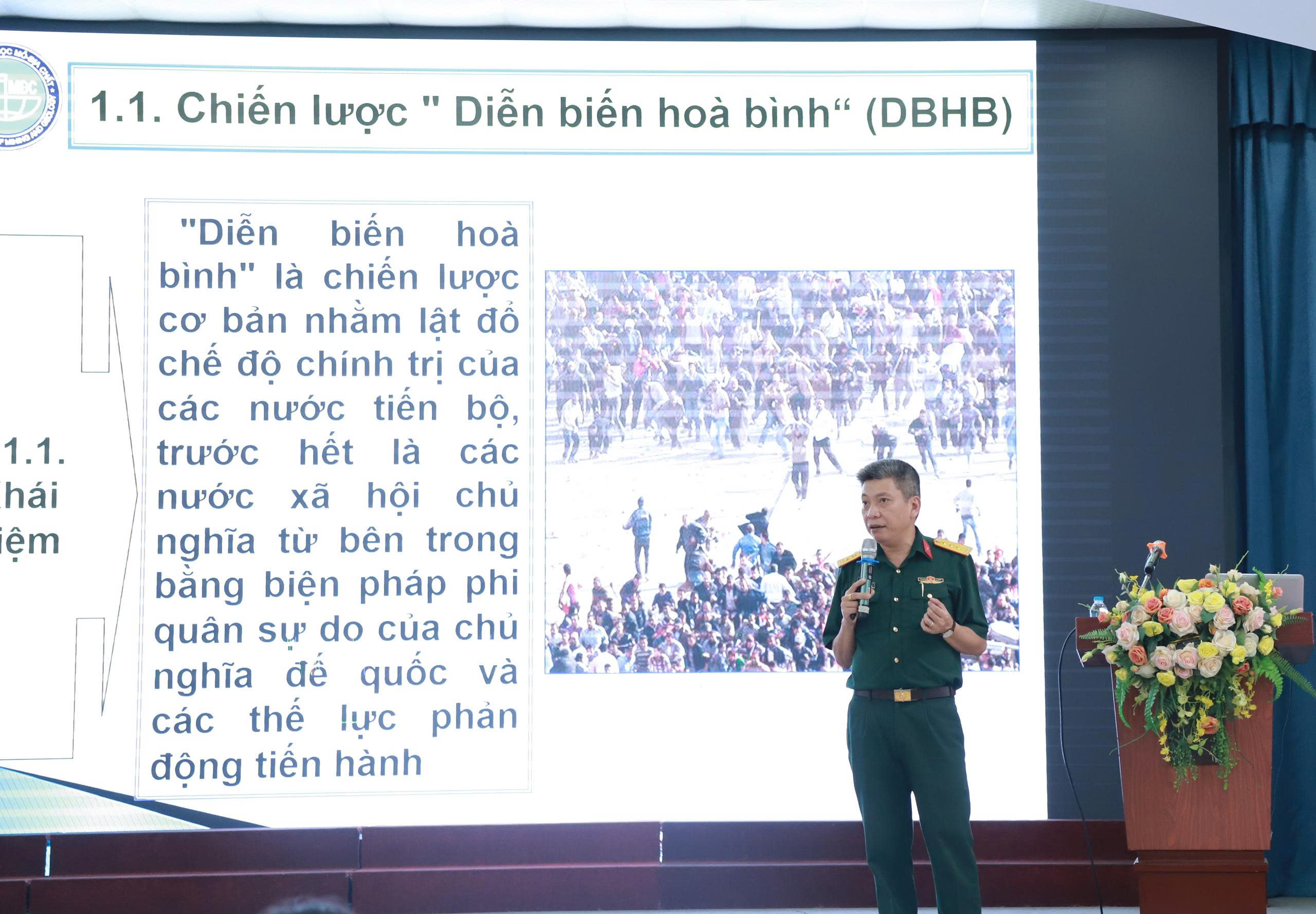 Thượng tá Nguyễn Văn Phong - Đại diện cho Khoa Giáo dục Quốc Phòng – Trường Đại học Mỏ Địa chất phát biểu tại Lễ Khai mạc