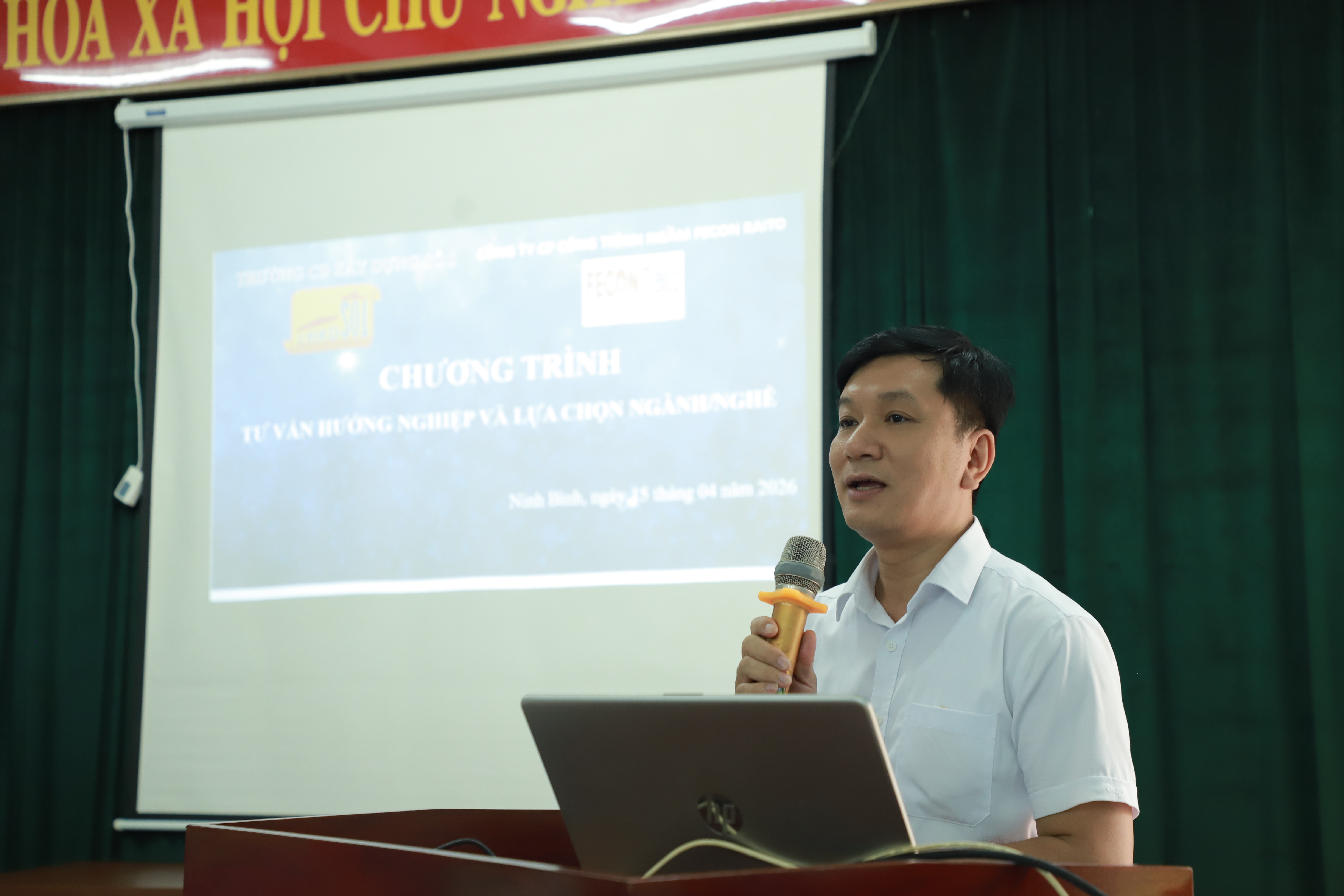 Với phương châm đào tạo gắn liền với thị trường lao động, đào tạo theo đáp ứng yêu cẩu của doanh nghiệp, sáng ngày 15/04/2026. Trường CĐXD số 1 đã phối hợp với Công ty CP Công trình ngầm FECON RAITO tổ chức chương trình 'Tư vấn hướng nghiệp và lựa chọn ngành nghề' cho học sinh khối 12 của trường THPT Ý Yên – Tỉnh Ninh Bình.