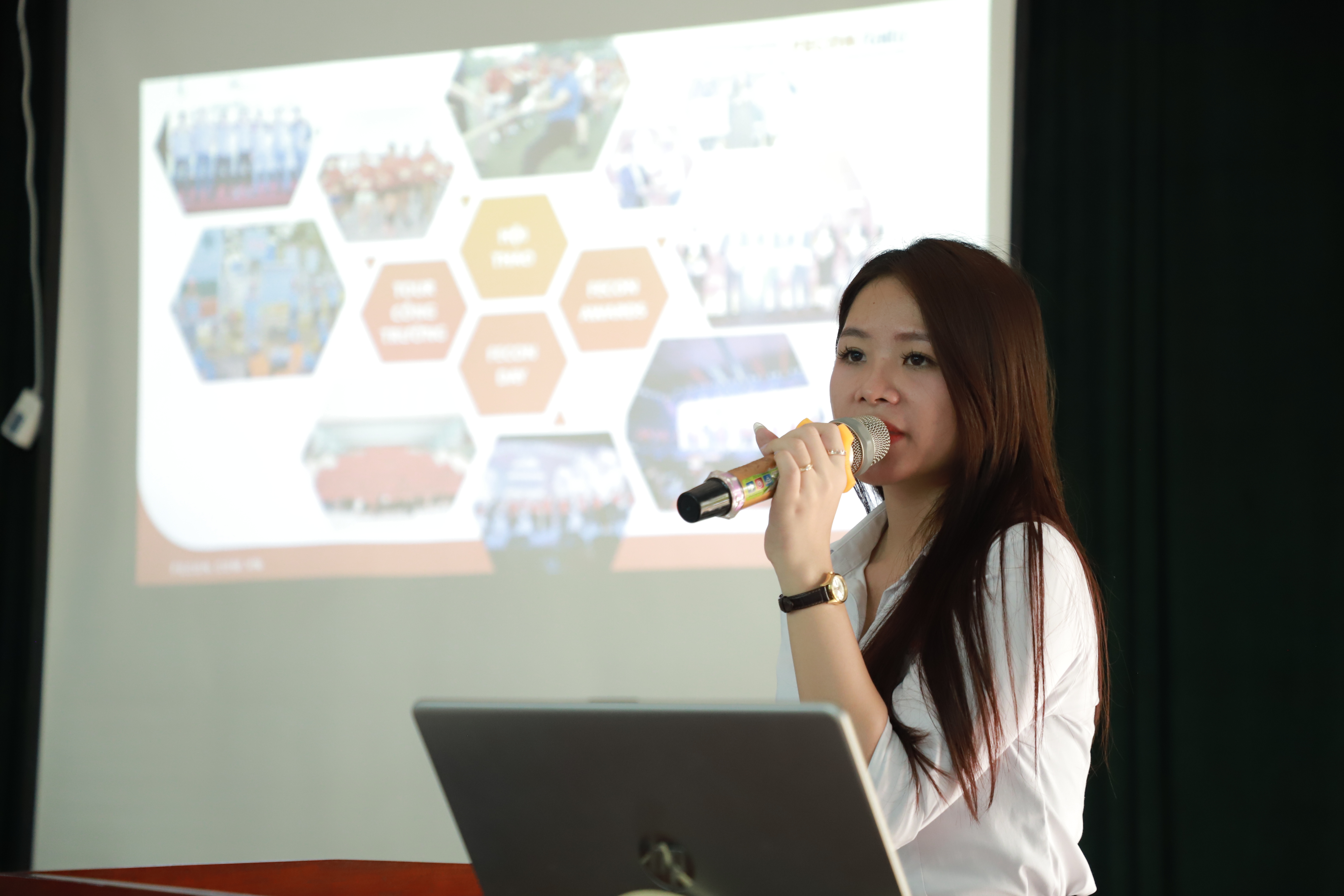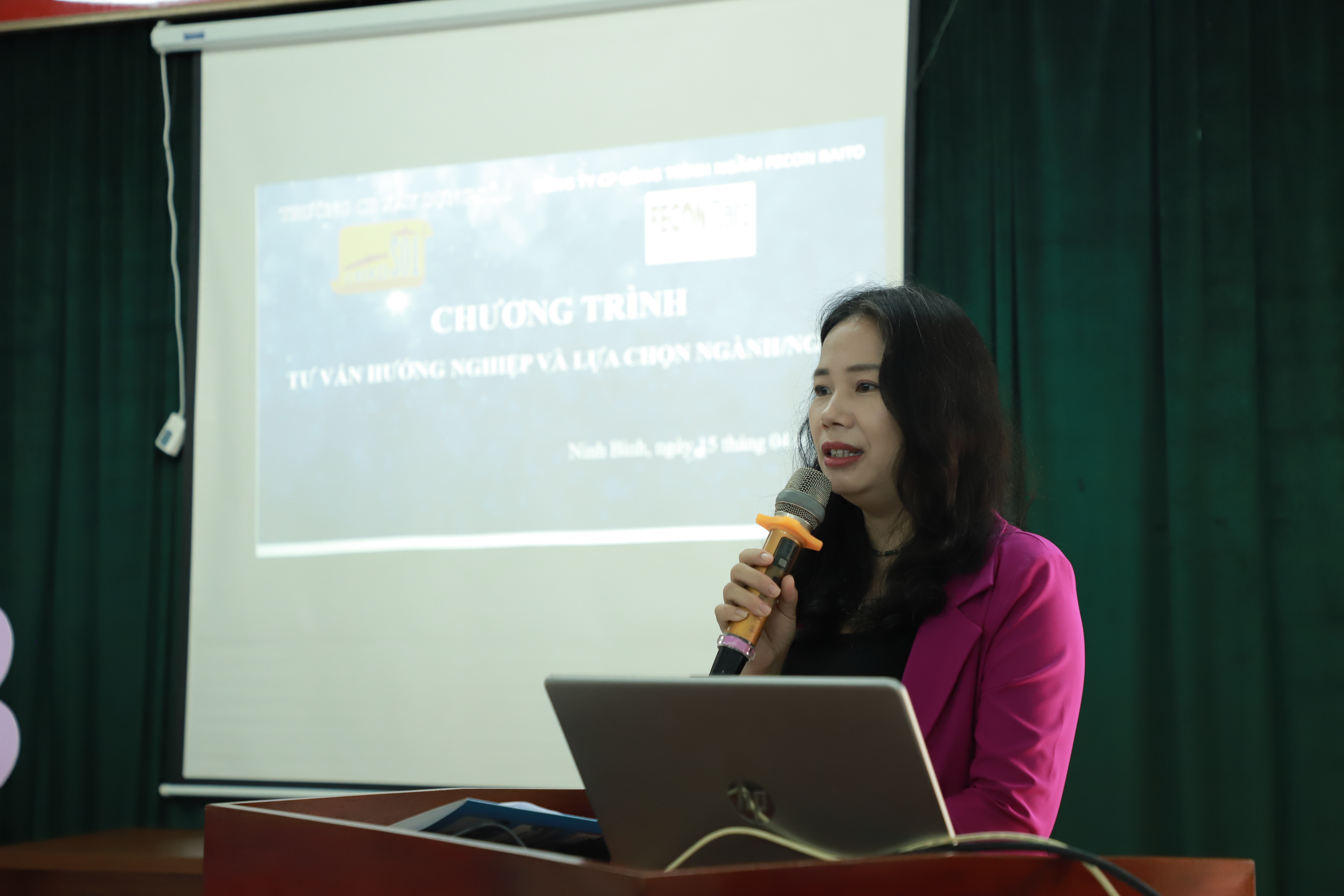 Bà Khánh Linh - Phòng nhân sự Công ty cổ phần Công trình ngầm FECON RAITO giới thiệu ưu đãi của công ty đối với học sinh.