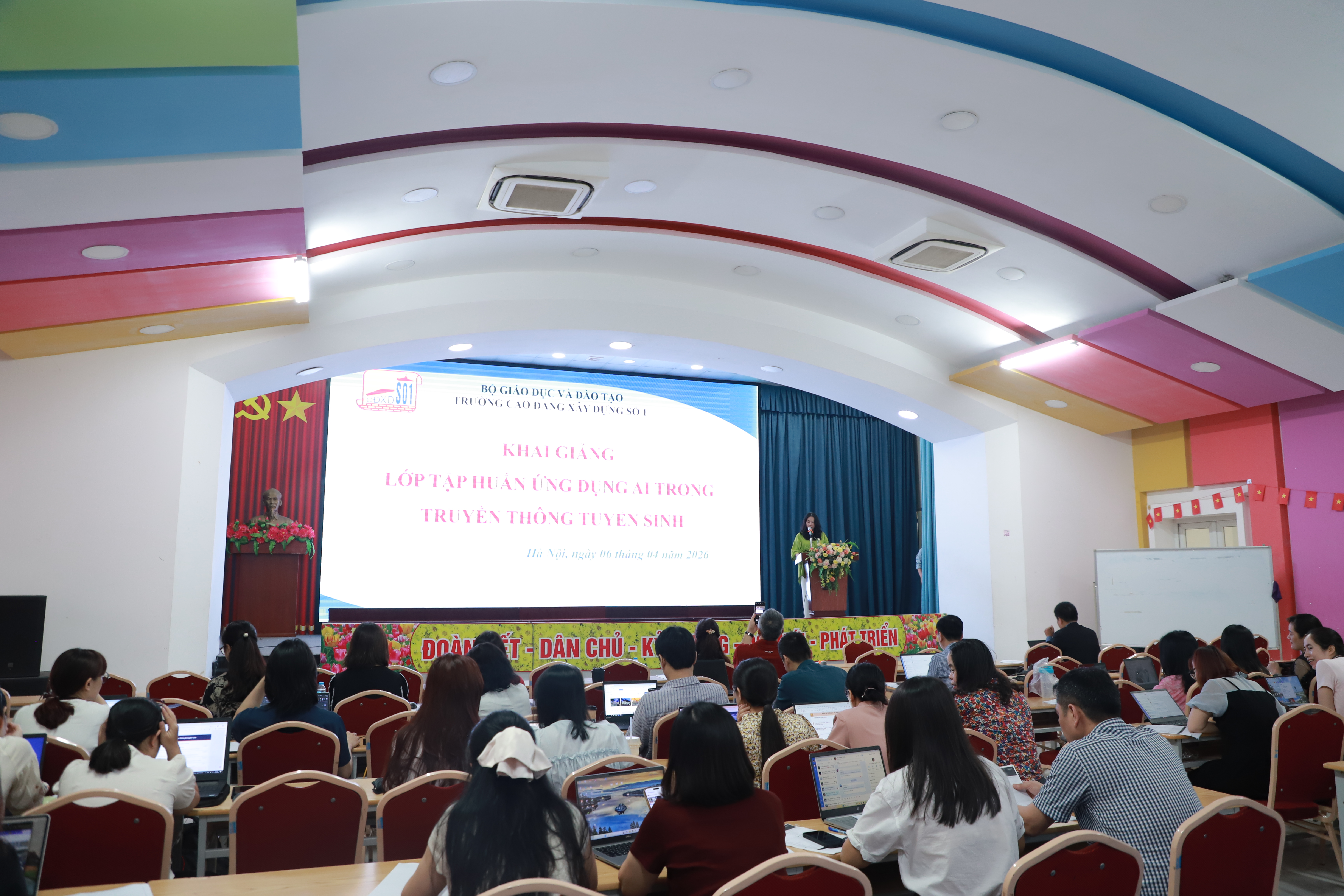 Sáng ngày 05/04/2026, Trường Cao đẳng Xây dựng số 1 đã tổ chức khóa tập huấn “Ứng dụng công nghệ AI trong Truyền thông và tuyển sinh” cho giảng viên, giáo viên và viên chức nhà trường.