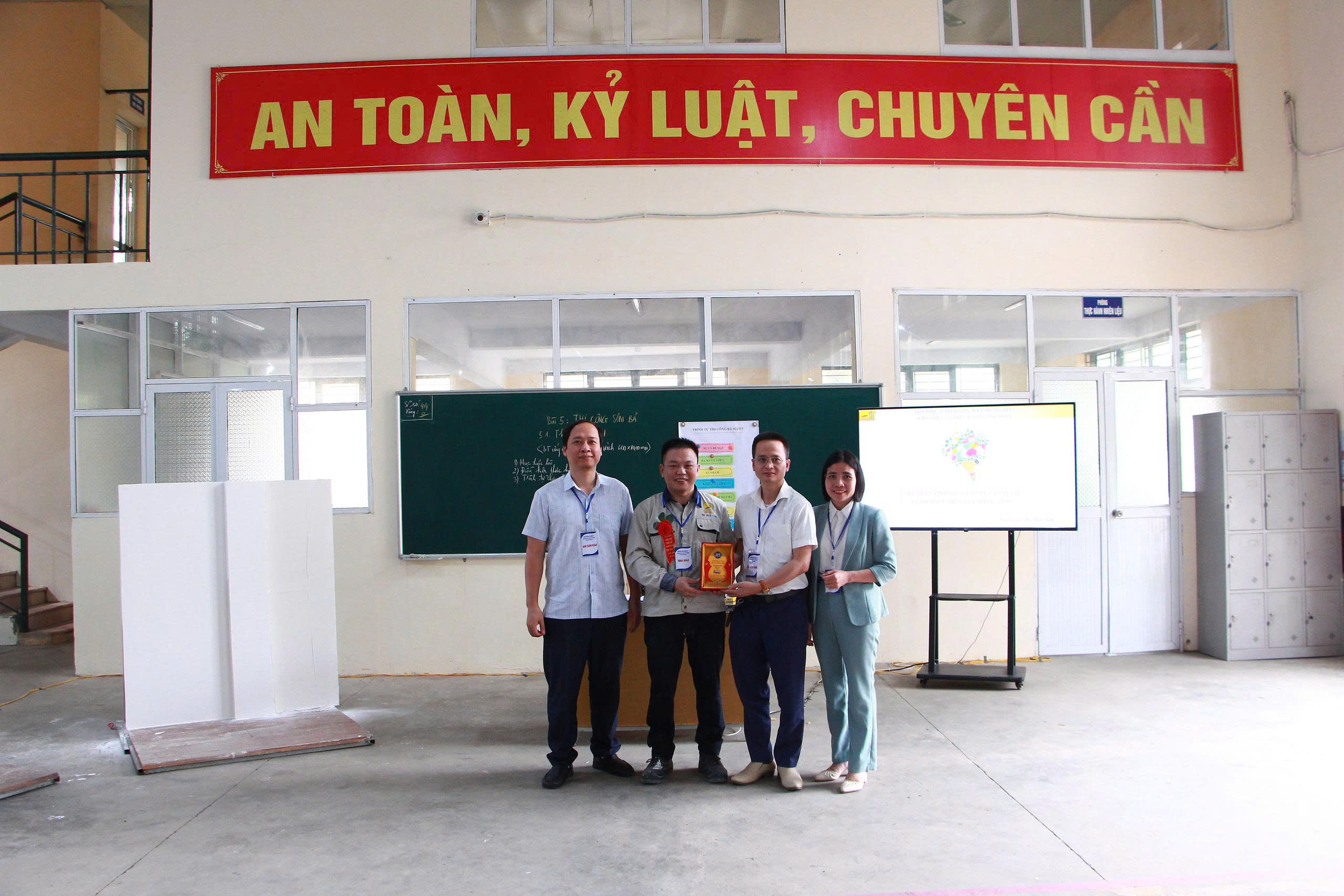 Hình ảnh Thầy giáo Hà Duy Tân chụp ảnh cùng Ban tổ chức và Lãnh đạo Nhà trường