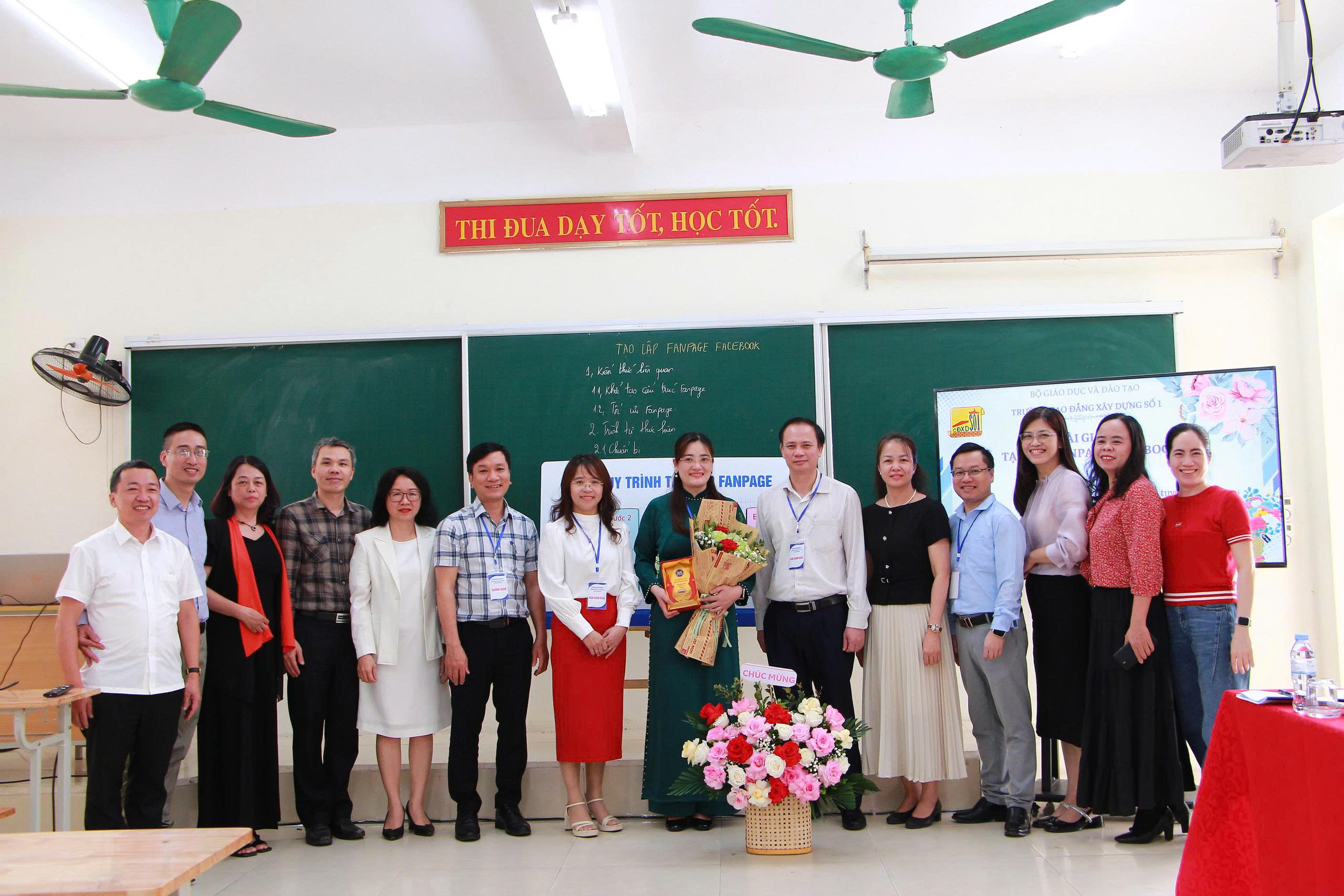 Hình ảnh Cô giáo Phan Thị Thu Hà chụp ảnh cùng Ban tổ chức và Lãnh đạo Nhà trường